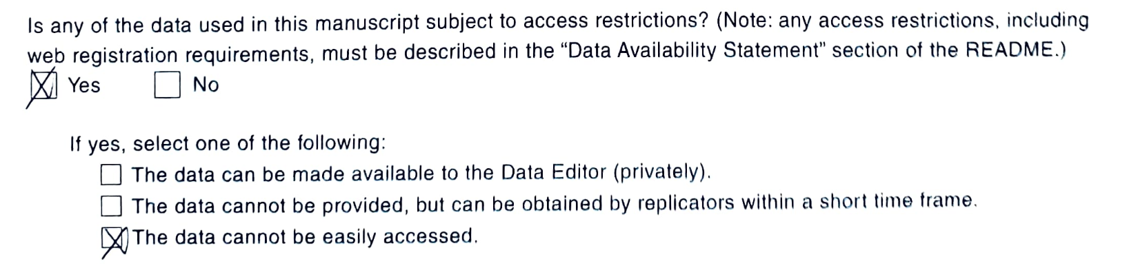 For the AEA submissions, this information is also available (somewhat different) as part of the “Data and Code Availability Form” (DCAF):