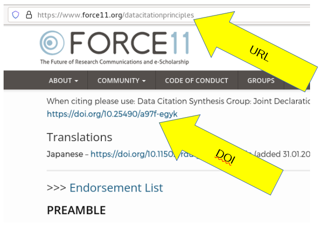 a DOI (e.g. 10.25490/a97f-egyk or https://doi.org/10.25490/a97f-egyk) is a permanent identifier, and comes with a commitment by the issuer to preserve the underlying object and its landing page.